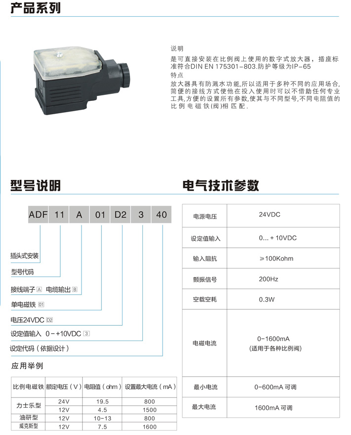 ADF插頭型數字式比例放大器-比例閥 當前位置: 網站首頁 > 產品中心 > 萬爾福液壓閥(廣東倉庫) > 比例閥