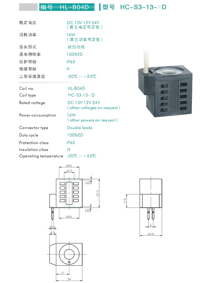HC-S2-13-XD-插裝閥用線圈 當(dāng)前位置: 網(wǎng)站首頁 > 產(chǎn)品中心 > 萬爾福線圈 > 插裝閥用線圈