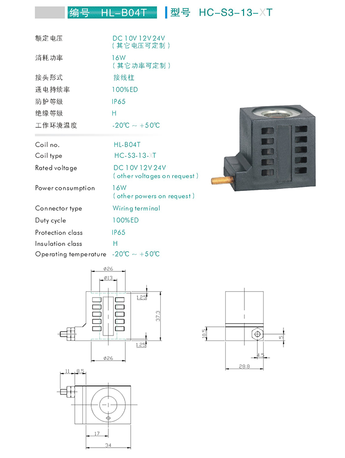 HC-S2-13-XT-插裝閥用線圈 當前位置: 網站首頁 > 產品中心 > 萬爾福線圈 > 插裝閥用線圈