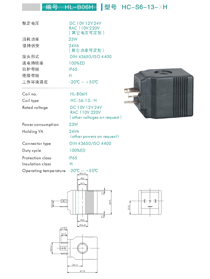 HC-S6-13-XH-插裝閥用線圈 當前位置: 網站首頁 > 產品中心 > 萬爾福線圈 > 插裝閥用線圈