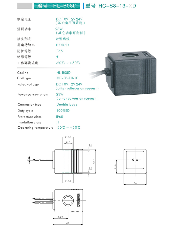 HC-S8-13-XD-插裝閥用線圈 當(dāng)前位置: 網(wǎng)站首頁(yè) > 產(chǎn)品中心 > 萬(wàn)爾福線圈 > 插裝閥用線圈