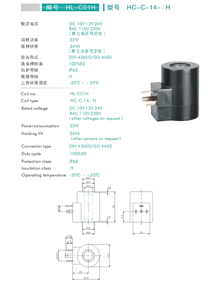 HC-C-14-XH-插裝閥用線圈 當前位置: 網站首頁 > 產品中心 > 萬爾福線圈 > 插裝閥用線圈