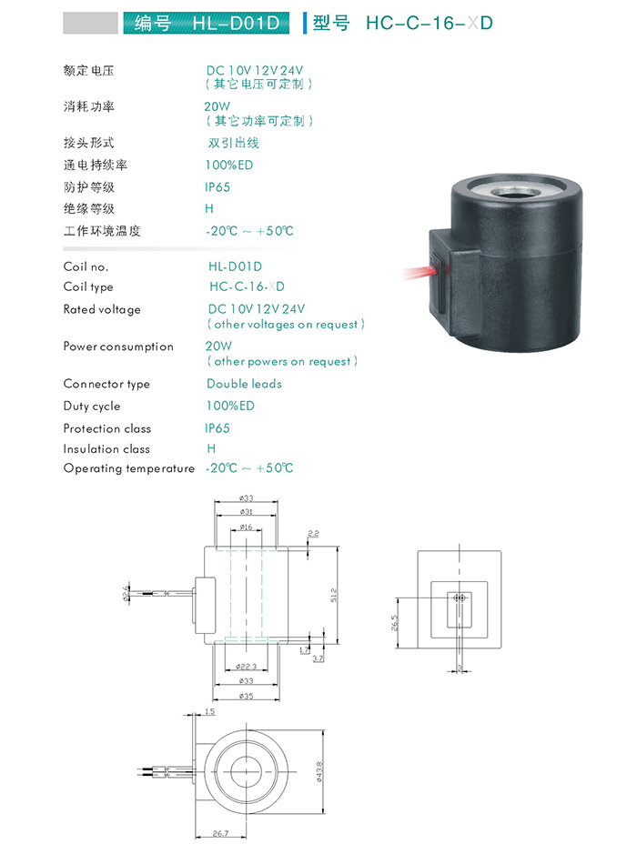 HC-C-16-XD-插裝閥用線圈 當(dāng)前位置: 網(wǎng)站首頁 > 產(chǎn)品中心 > 萬爾福線圈 > 插裝閥用線圈
