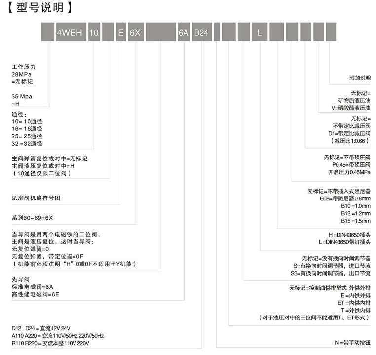 1.WEH型電液換向閥是用電磁閥為先導(dǎo)控制的換向閥,它采用板式連接,其連接尺寸符合DIN2430和SO4401標(biāo)準(zhǔn)。它有許多不同的性能和附加裝置可供選擇。